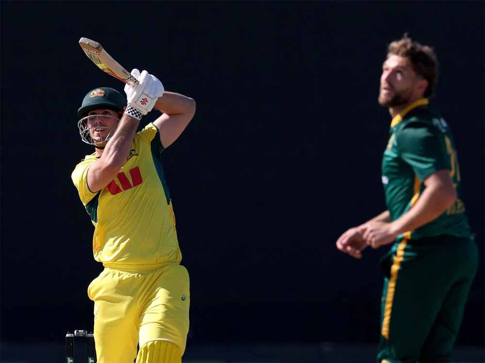 मेजबान ऑस्ट्रेलिया ने मैके के स्टेडियम में टॉस जीतकर बैटिंग चुनी। हेड और मार्श ने दमदार शुरुआत दिलाई। दोनों ने पहले विकेट के लिए 250 रनों की साझेदारी की। ऑस्ट्रेलिया को पहला झटका 35वें ओवर में हेड के रूप में लगा, जो स्पिनर केशव महाराज का शिकार बने। उन्होंने 103 गेंदों में 142 रन बनाने के बाद डेवाल्ड ब्रेविस को कैच थमाया। हेड के बल्ले से 17 चौके और पांच छक्के निकले। मार्श को सेनुरन मुथुसामी ने 37वें ओवर में रिकेल्टन के हाथों लपकवाया। उन्होंने 106 गेंदों में 100 रन जुटाए, जिसमें 6 चौके और 5 सिक्स शामिल हैं। मार्श ने इस दौरान तीन हजार वनडे रन कंप्लीट किए।
