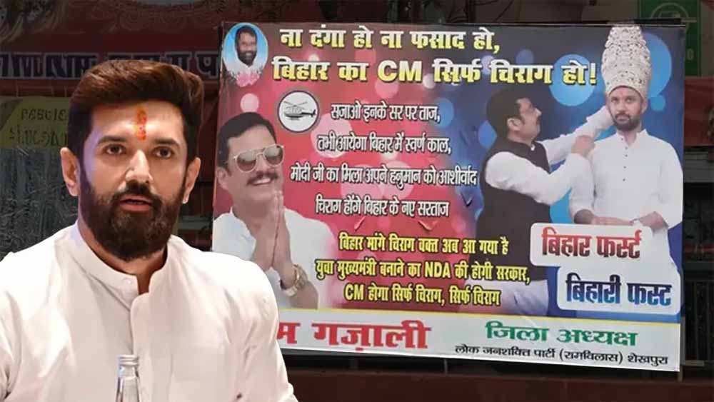 पोस्टर में यह भी लिखा गया है कि 'बिहार मांगे चिराग, वक्त अब आ गया है युवा मुख्यमंत्री बनाने का।' इसके साथ ही यह संदेश देने की कोशिश की गई है कि अगर एनडीए की सरकार बनती है तो मुख्यमंत्री का चेहरा चिराग पासवान होना चाहिए।