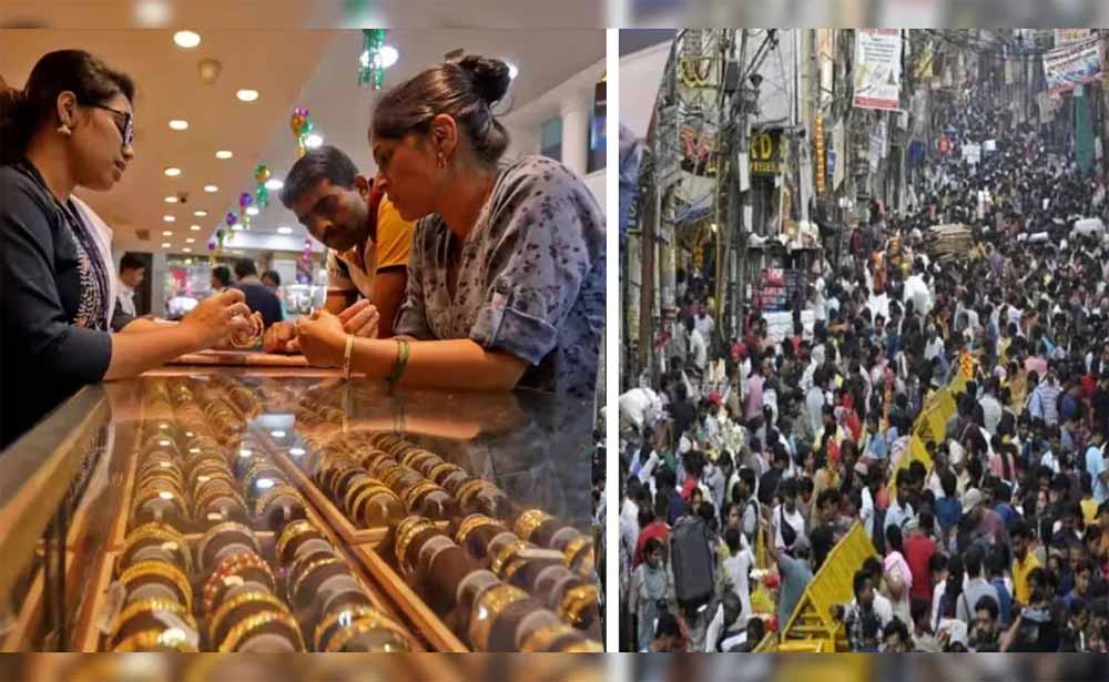जयपुर के बाजारों में धनतेरस पर सुबह से ही खरीदारों की भीड़ उमड़ पड़ी। कार-बाइक शोरूम से लेकर ज्वेलरी और इलेक्ट्रॉनिक्स दुकानों तक चहल-पहल बनी रही। मोती डूंगरी मंदिर में करीब 3,000 गाड़ियां पूजन के लिए पहुंचीं।