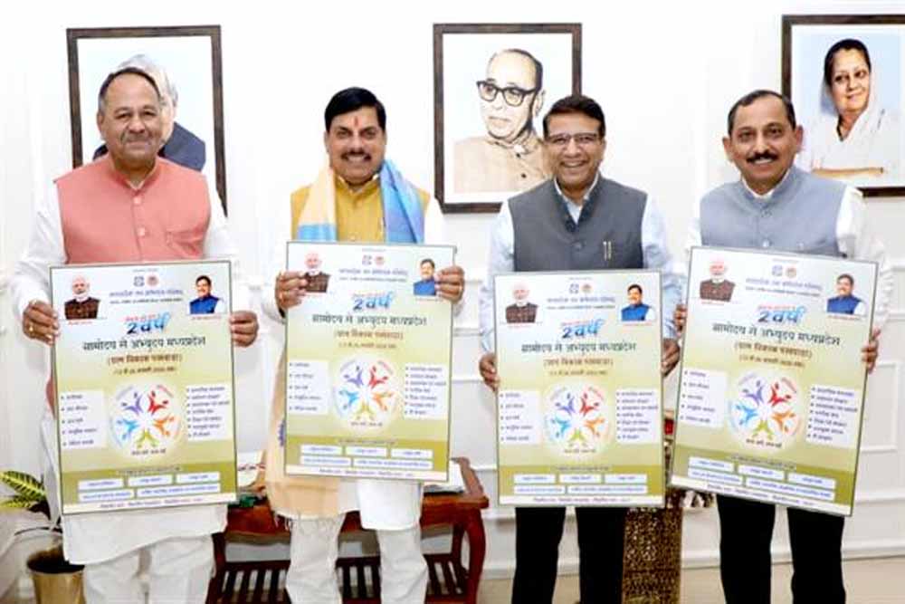 मुख्यमंत्री डॉ. मोहन यादव ने शुक्रवार की शाम समत्व भवन मुख्यमंत्री निवास में अभ्युदय मध्यप्रदेश अभियान का पोस्टर लांच किया। यह अभियान 12 जनवरी से 26 जनवरी 2026 तक संचालित होगा। पोस्टर विमोचन के अवसर पर मध्यप्रदेश जन अभियान परिषद के उपाध्यक्ष श्री मोहन नागर, अपर मुख्य सचिव, योजना आर्थिक एवं सांख्यिकी श्री संजय कुमार शुक्ला और परिषद के कार्यपालक निदेशक डॉ. बकुल लाड उपस्थित थे।
