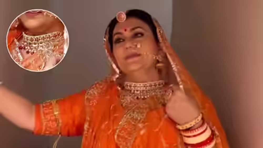 उन्होंने गले में हैवी नेकलेस, हाथों में चूड़ियां और कड़े, माथे पर लाल बिंदी और नाक में नथ पहनी हुई है, जो उनकी शाही और रॉयल छवि को निखारता है।