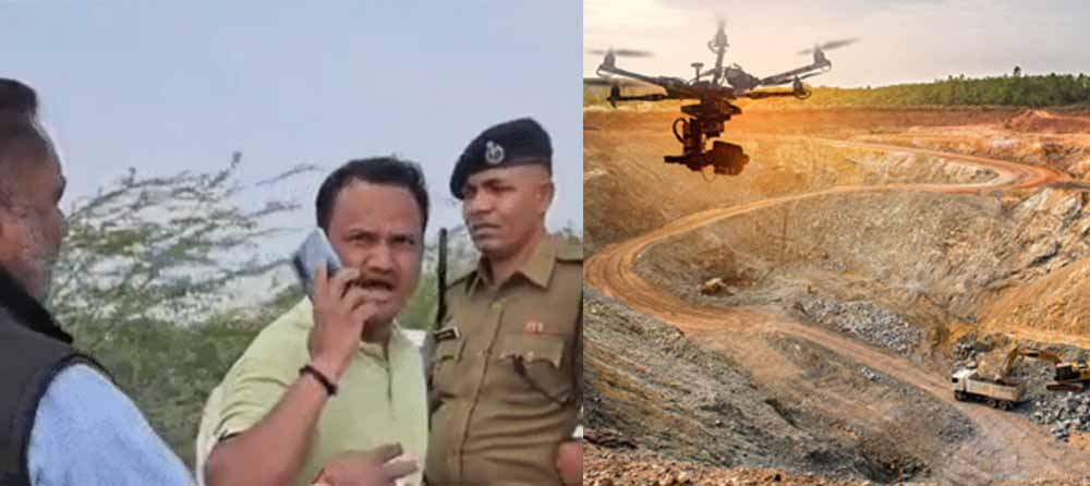 माइन धारकों का ड्रोन सर्वे करने पहुंची थी टीम