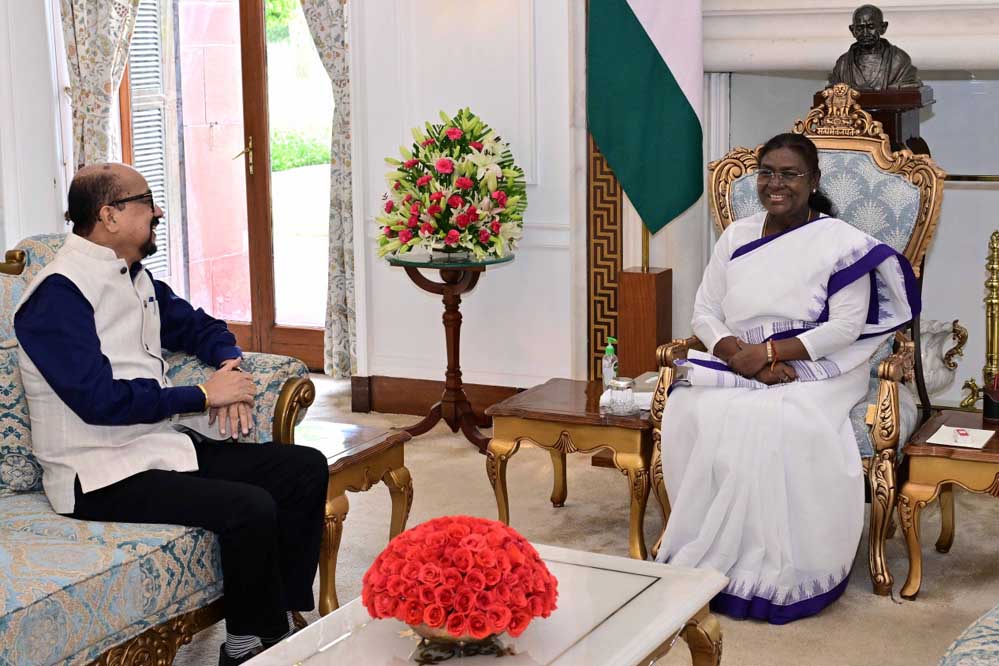 राज्यपाल श्री रमेन डेका ने आज नई दिल्ली राष्ट्रपति भवन में राष्ट्रपति श्रीमती द्रौपदी मुर्मु से सौजन्य भेंट की।
