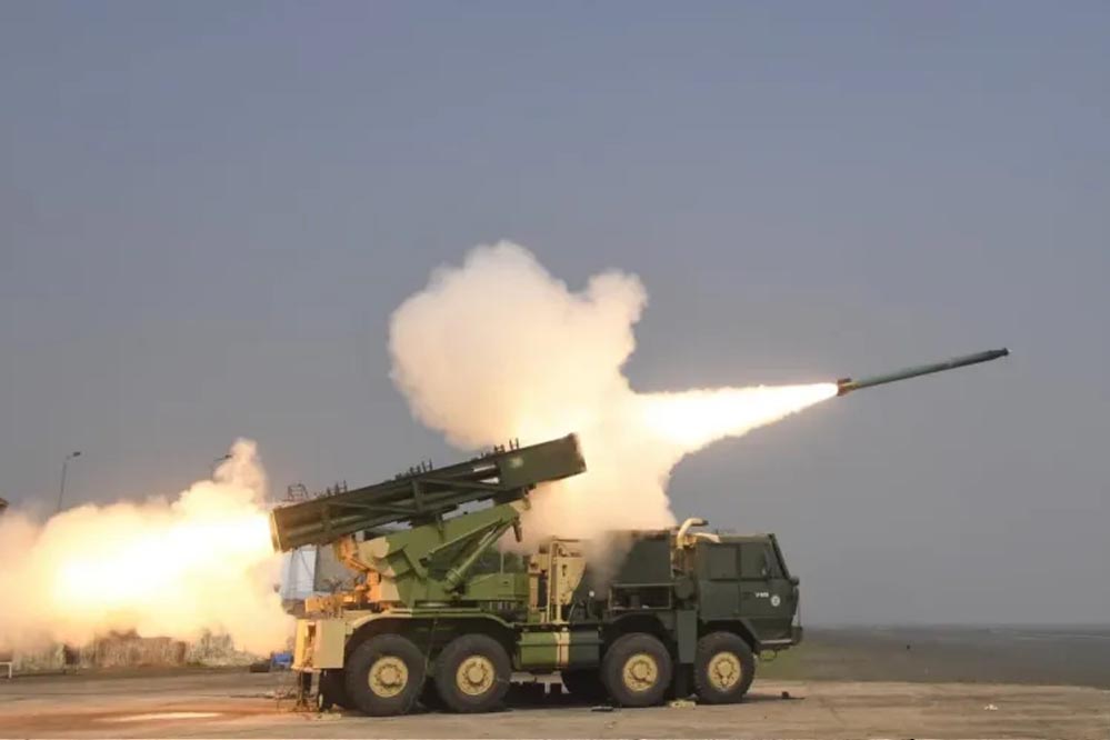 पिनाका (भगवान शिव के धनुष का नाम) DRDO ने 1986 में विकसित किया, रूसी ग्रैड-स्मर्च को रिप्लेस करने के लिए. कारगिल युद्ध (1999) में पहली बार इस्तेमाल हुआ. पाकिस्तानी बंकर उड़ाए. आज 4 रेजिमेंट (72+ लॉन्चर) तैनात, 2030 तक 22 रेजिमेंट होंगी.