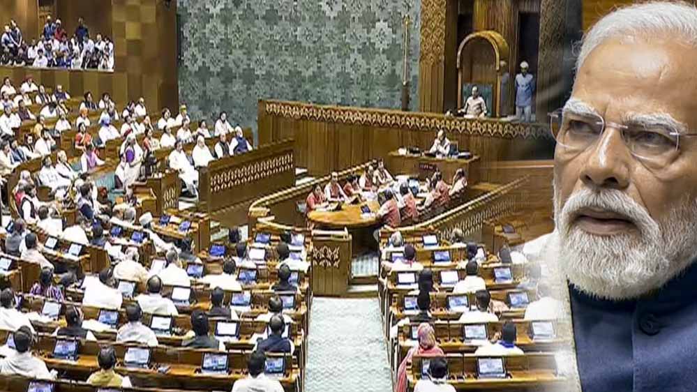 लोकसभा में भारी हंगामे के चलते आज भी कार्यवाही स्थगित हुई है। इसके साथ ही अब तय हो गया है कि लोकसभा में पीएम नरेंद्र मोदी का भाषण नहीं होगा। वह राष्ट्रपति के अभिभाषण पर हुई चर्चा का जवाब देने वाले थे, लेकिन हंगामे के चलते ऐसा नहीं हो सका। उनके भाषण के लिए बुधवार शाम 5 बजे का समय तय था, लेकिन कांग्रेस समेत विपक्षी सांसदों के हंगामे के चलते कार्यवाही को स्थगित करना पड़ा। अब उनके भाषण के बिना ही राष्ट्रपति के अभिभाषण पर धन्यवाद प्रस्ताव को मंजूर कर लिया गया है। 2004 के बाद ऐसा पहली बार हुआ है। 2004 में तत्कालीन पीएम मनमोहन सिंह भी अपना भाषण नहीं दे सके थे। इस बार कुल तीन सांसद ही राष्ट्रपति के अभिभाषण पर हुई चर्चा में अपनी स्पीच पूरी कर सके।