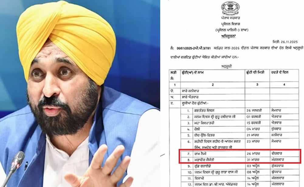 पंजाब सरकार द्वारा 2026 के लिए जारी अवकाश कैलेंडर राज्य की सशक्त भावना और समृद्ध सिख परंपराओं को दर्शाता है। इसमें वैशाखी और गुरु नानक जयंती जैसे प्रमुख आयोजनों के साथ-साथ राष्ट्रीय त्योहार भी शामिल हैं। यह विविधतापूर्ण मिश्रण लोगों, श्रमिकों और परिवारों को पूरे वर्ष काम, आवश्यक रीति-रिवाजों और सुखद पारिवारिक समय के बीच संतुलन बनाए रखने में मदद करता है।