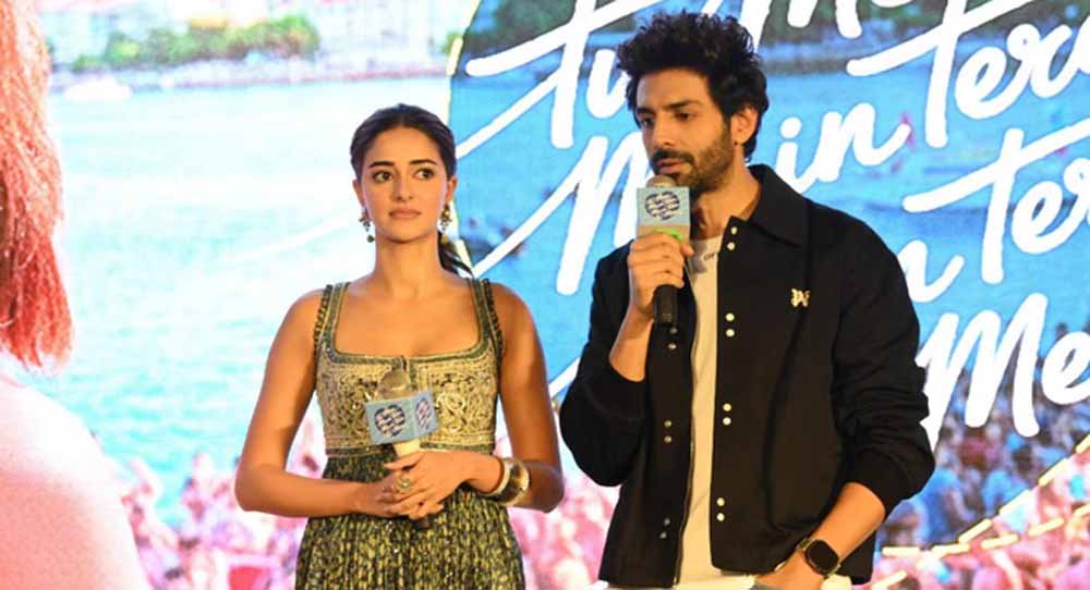 अभिनेता कार्तिक आर्यन और अनन्या पांडे की बहुप्रतीक्षित रोमांटिक कॉमेडी फिल्म ‘तू मेरी मैं तेरा, मैं तेरा तू मेरी’ एक बार फिर सुर्खियों में है। धर्मा प्रोडक्शन और नमः पिक्चर्स के बैनर तले बनी इस फिल्म का बहुचर्चित टाइटल ट्रैक जयपुर में आयोजित एक प्रेस कॉन्फ्रेंस के दौरान लॉन्च किया गया। इस मौके पर फिल्म की मुख्य जोड़ी कार्तिक और अनन्या ने अपनी बेहतरीन मौजूदगी से कार्यक्रम को यादगार बना दिया।