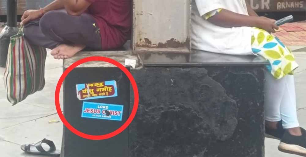 दुर्ग रेलवे स्टेशन पर फुट ओवर ब्रिज को सपोर्ट देने लगाए गए लोहे के पाेल एवं बैठने के लिए बनाए गए स्थान पर पांच छह स्थानों पर एक धर्म विशेष के लिए प्रेरित करने वाला पंपलेट चिपकाया गया है। स्टेशन के प्लेटफार्म नंबर दो एवं तीन के बीच रैंप वाले स्थान पर यह लगा हुआ है।