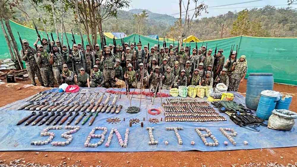 बीजापुर में सुरक्षाबलों की बड़ी कामयाबी: हथियारों समेत 12 माओवादियों का आत्मसमर्पण, ₹54 लाख का इनाम था घोषित