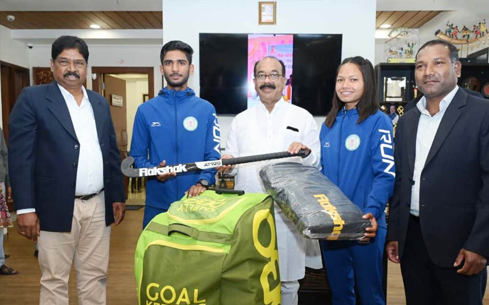 रायपुर : उप मुख्यमंत्री अरुण साव ने नेशनल सेंटर ऑफ एक्सीलेंस में परफॉर्मेंस असेसमेंट के लिए चयनित खिलाड़ियों को दिए हॉकी किट
