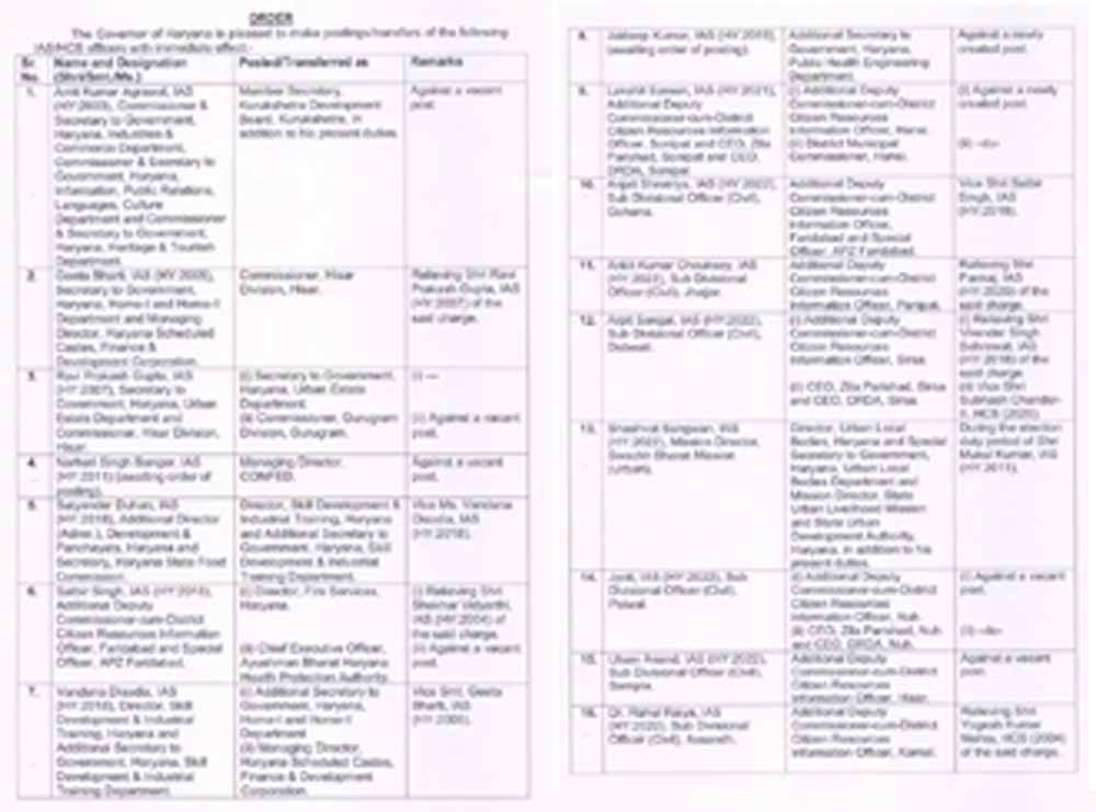 हरियाणा में बड़ा प्रशासनिक फेरबदल: 21 IAS और 42 HCS अधिकारियों के तबादले