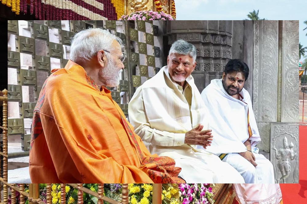 PM मोदी ने मल्लिकार्जुन ज्योतिर्लिंग में की पूजा, नायडू और पवन कल्याण भी रहे साथ