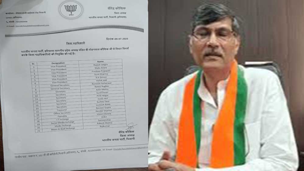 भिवानी भाजपा की नई टीम घोषित,जिलाध्यक्ष विरेंद्र कौशिक ने किया ऐलान