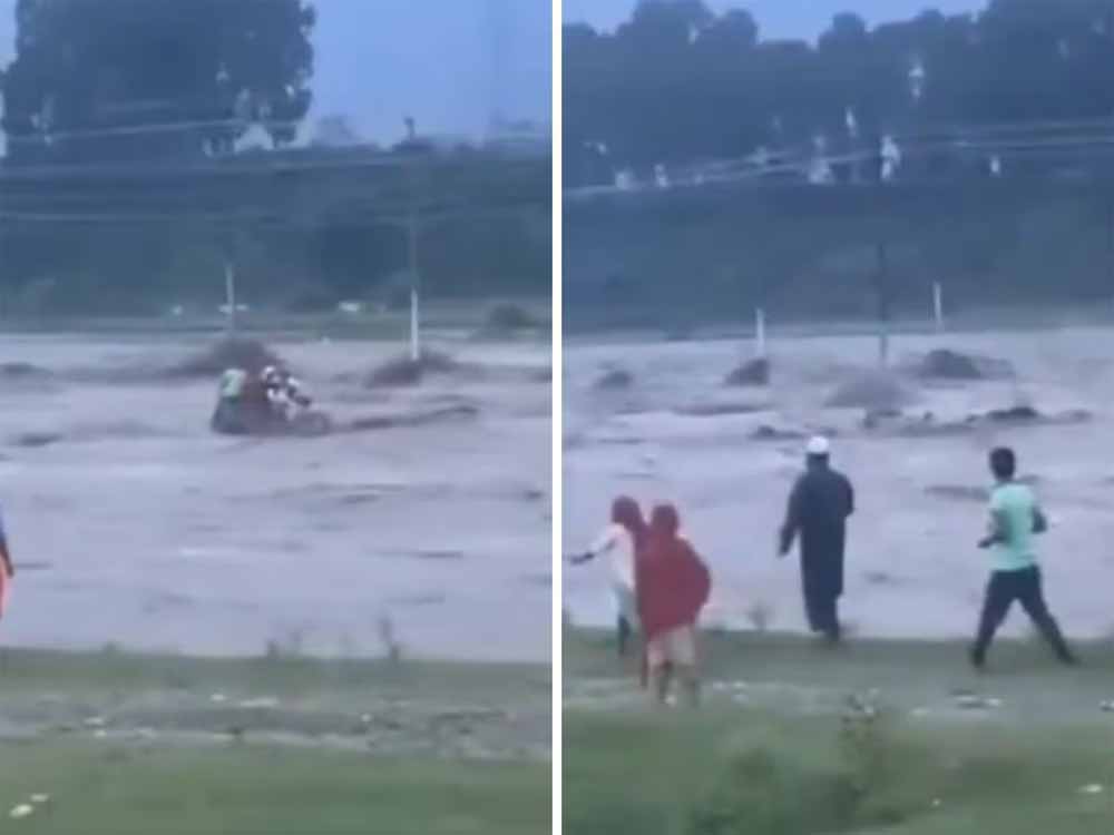 देहरादून में जल सैलाब का कहर: उफनती नदी में समा गया ट्रैक्टर, लोगों की मदद की गुहार