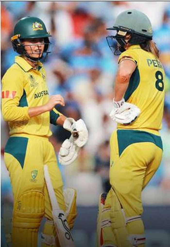 छठे नंबर पर बल्लेबाजी करने आई एश्ले गार्डनर ने 45 गेंद पर 4 छक्के और 4 चौके लगाते हुए 63 रन की पारी खेल टीम का स्कोर 300 के पार पहुंचा दिया। गार्डनर सातवें विकेट के रूप में जब आउट हुई, ऑस्ट्रेलिया का स्कोर 48.3 ओवर में 7 विकेट पर 331 था। ऑस्ट्रेलिया ने 49.5 ओवर में सभी विकेट खोकर 338 रन बनाए। भारत के लिए श्री चरणी, दीप्ति शर्मा ने 2-2, क्रांति गौड़, अमनजोत कौर और राधा यादव ने 1-1 विकेट लिए। तीन बल्लेबाज रन आउट हुईं। भारत को इस मैच को जीतने और फाइनल में पहुंचने के लिए इतिहास रचना होगा। महिला वनडे क्रिकेट में इससे पहले इतना बड़ा लक्ष्य चेज नहीं किया गया है।